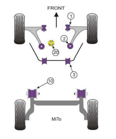 Abarth 500 / 595 / 695 Powerflex Front Arm Rear Bushes