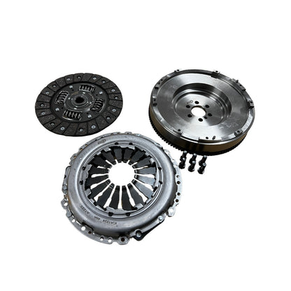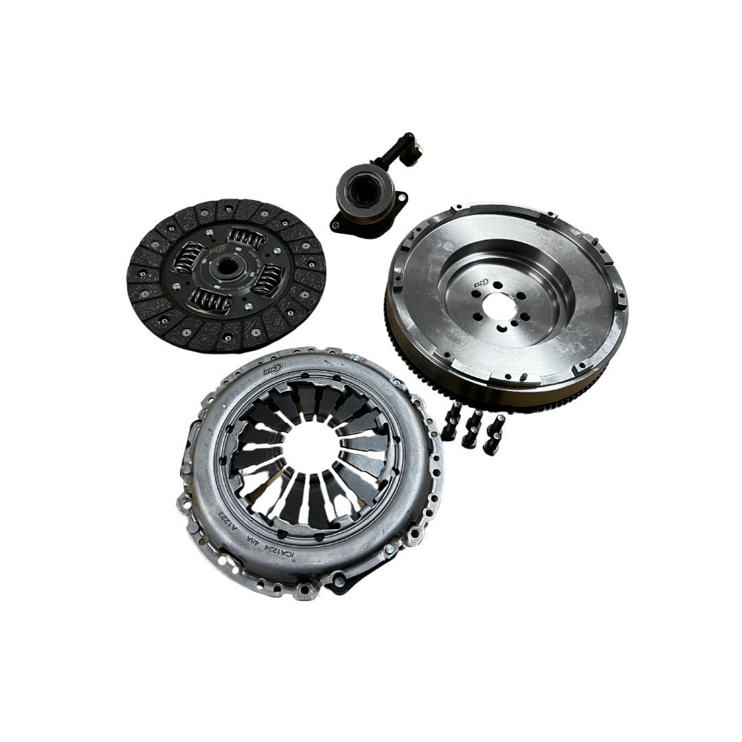 - Volante monomasa de hierro fundido (mismo peso que el volante bimasa original) para garantizar que no haya ruido en la transmisión ni en los engranajes al ralentí.