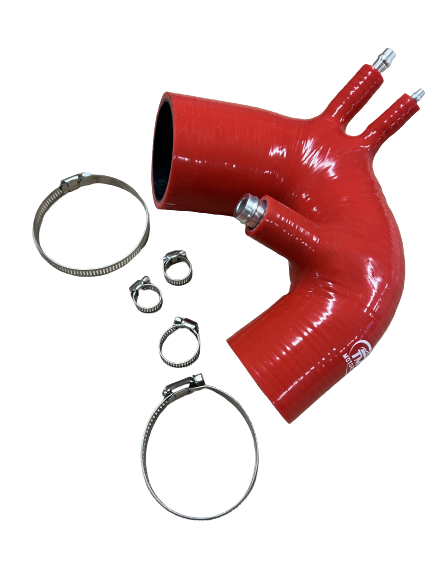 La manguera de admisión fabricada para los modelos Abarth 500/595 con turbocompresor IHI está compuesta por 5 capas de silicona y revestida con flúor en el interior para lograr un acabado de la mejor calidad. El diámetro interior de la manguera se ha maximizado para mejorar el rendimiento. Viene con conectores de aleación y es un reemplazo directo de la manguera de plástico estándar.
