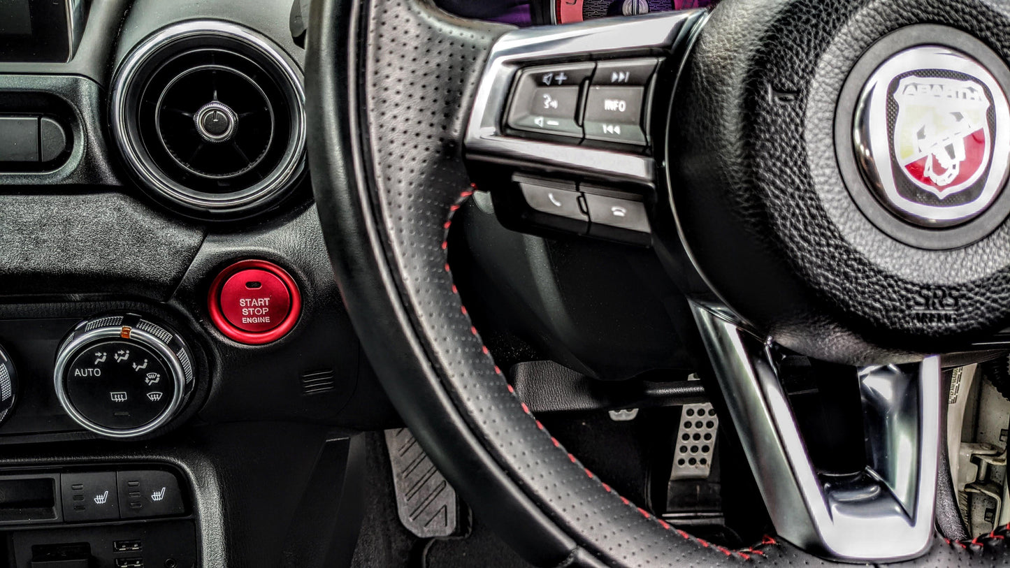 Add a perfect touch of colour and style to your Abarth or Fiat 124 Spider with this easy-to-fit 2 piece Stop / Start Button Surround set. Designed for effortless installation, each piece comes pre-fitted with double-sided tape—simply peel, stick, and instantly enhance your car’s interior.