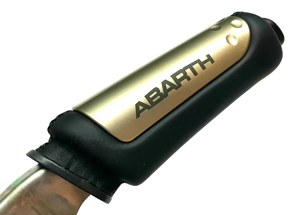 Equipped with a leather handle with an aluminum trim with Abarth printed on either side
